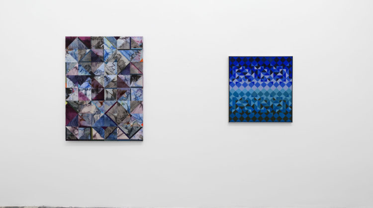 Through the recent works of Jonathan VanDyke and Sean Shanahan, the transformation affecting the idea of the “grid” reaches the present in two completely opposite outcomes. For Shanahan, the modularity of the works and their tone-on-tone chromatic pairings constitute a near-ascetic narrative nullification; for VanDyke, by contrast, the grid becomes a technical and meditation device for social storytelling that reflects on the passage of time and transformation of materials through slow, quiet, long processes: scraps of clothing worn by people close to him are sewn together as a testament to a reunited fragmentation, a grid once again welded back together.